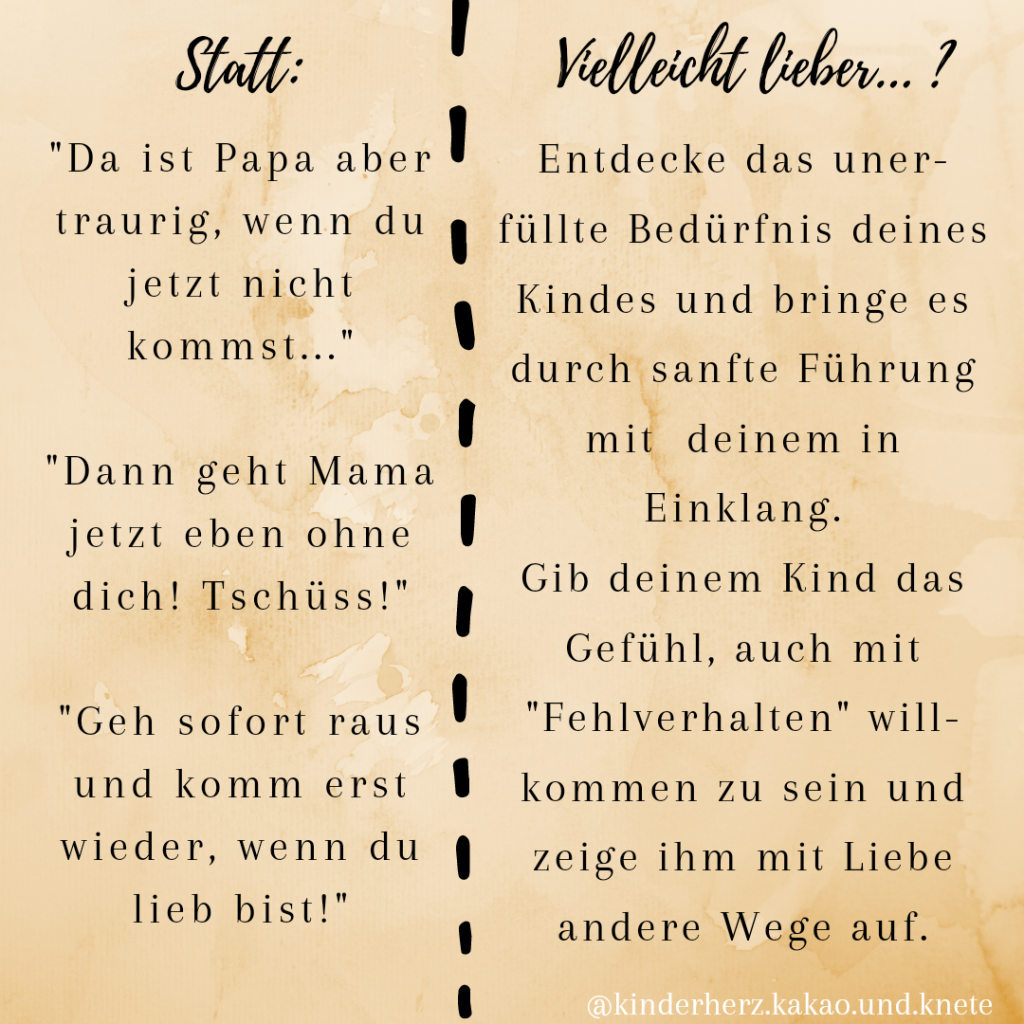 Sätze von Eltern à la „… da wird Mama aber ganz traurig…“ oder „… wenn du jetzt nicht kommst, bleibst du eben allein!“ sind emotionale Erpressung und versetzen unsere Kleinen in tiefe Ängste, kratzen arg an ihrem Urvertrauen.