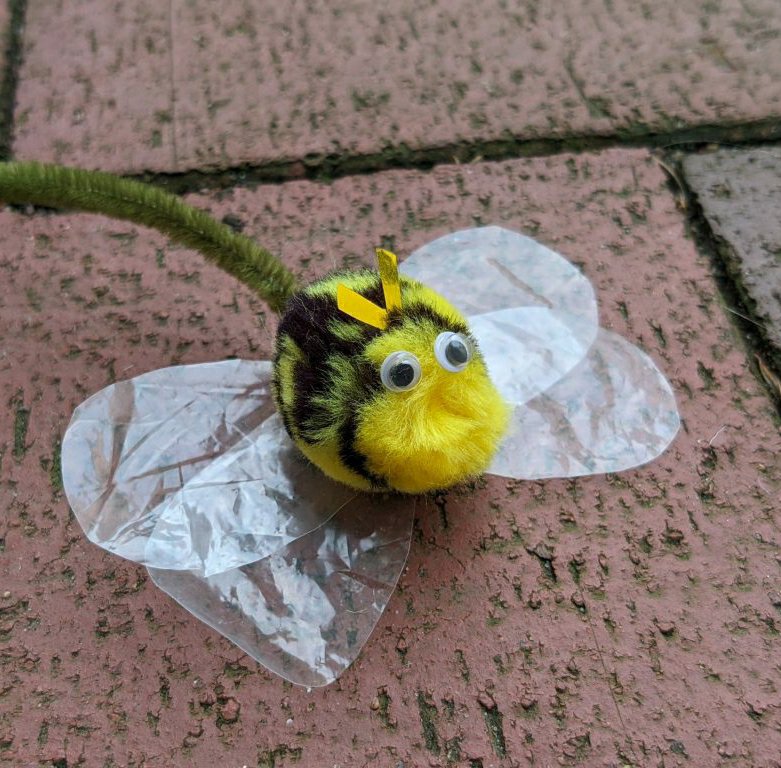 ? Die gebastelte #Biene sieht am Draht aus, aus würde sie fliegen und wird von meinen Jungs gerne bespielt.