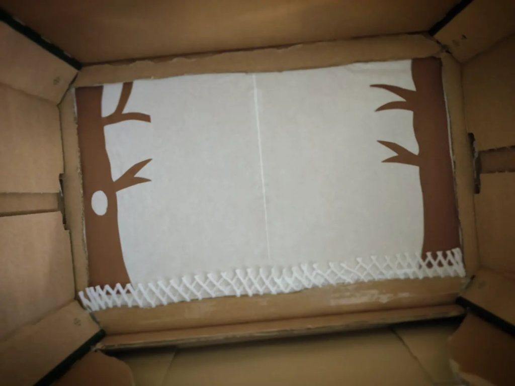 Für das „Theater“ nahmen wir eine alte Obstkiste und haben den Boden durch Butterbrotpapier und etwas Waldambiente ersetzt.