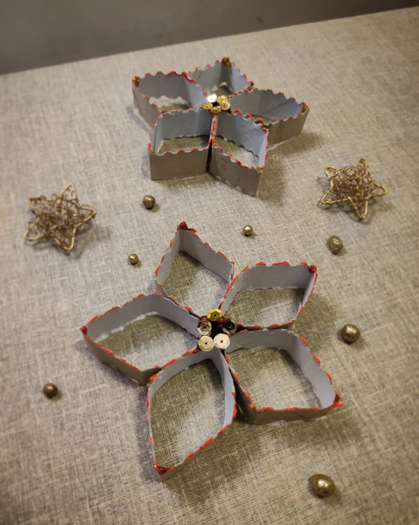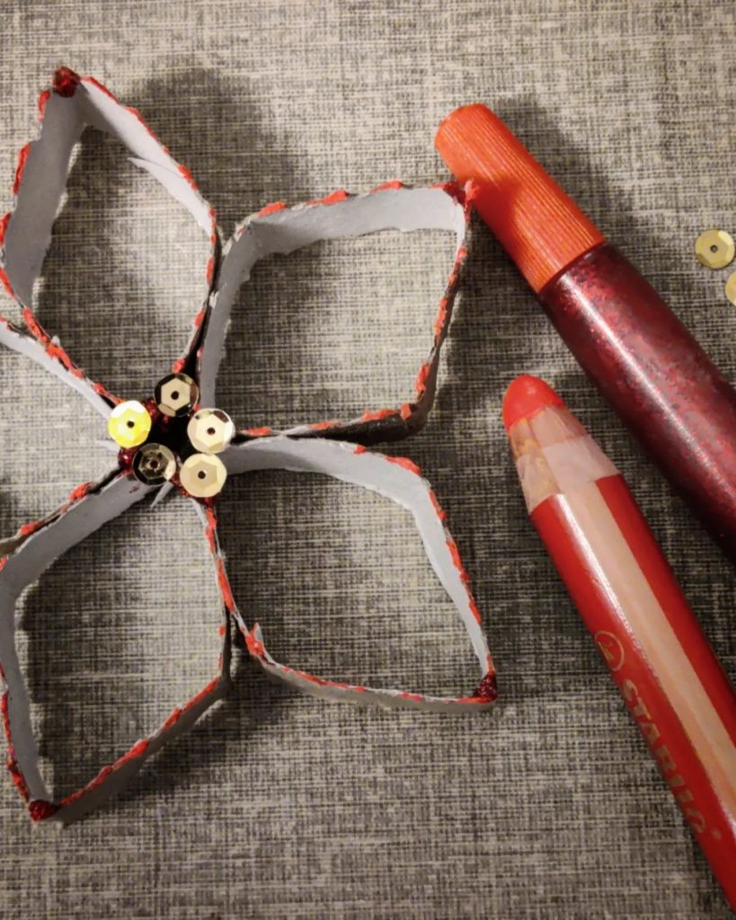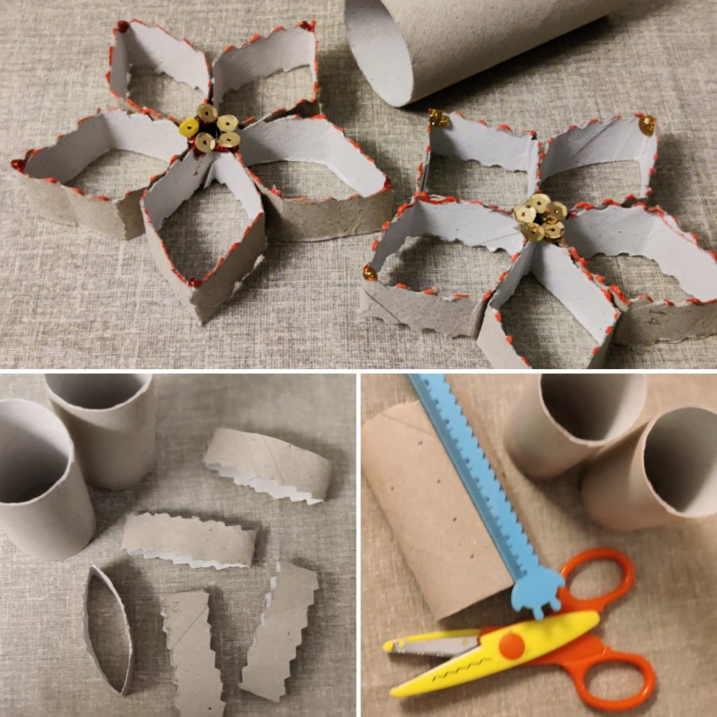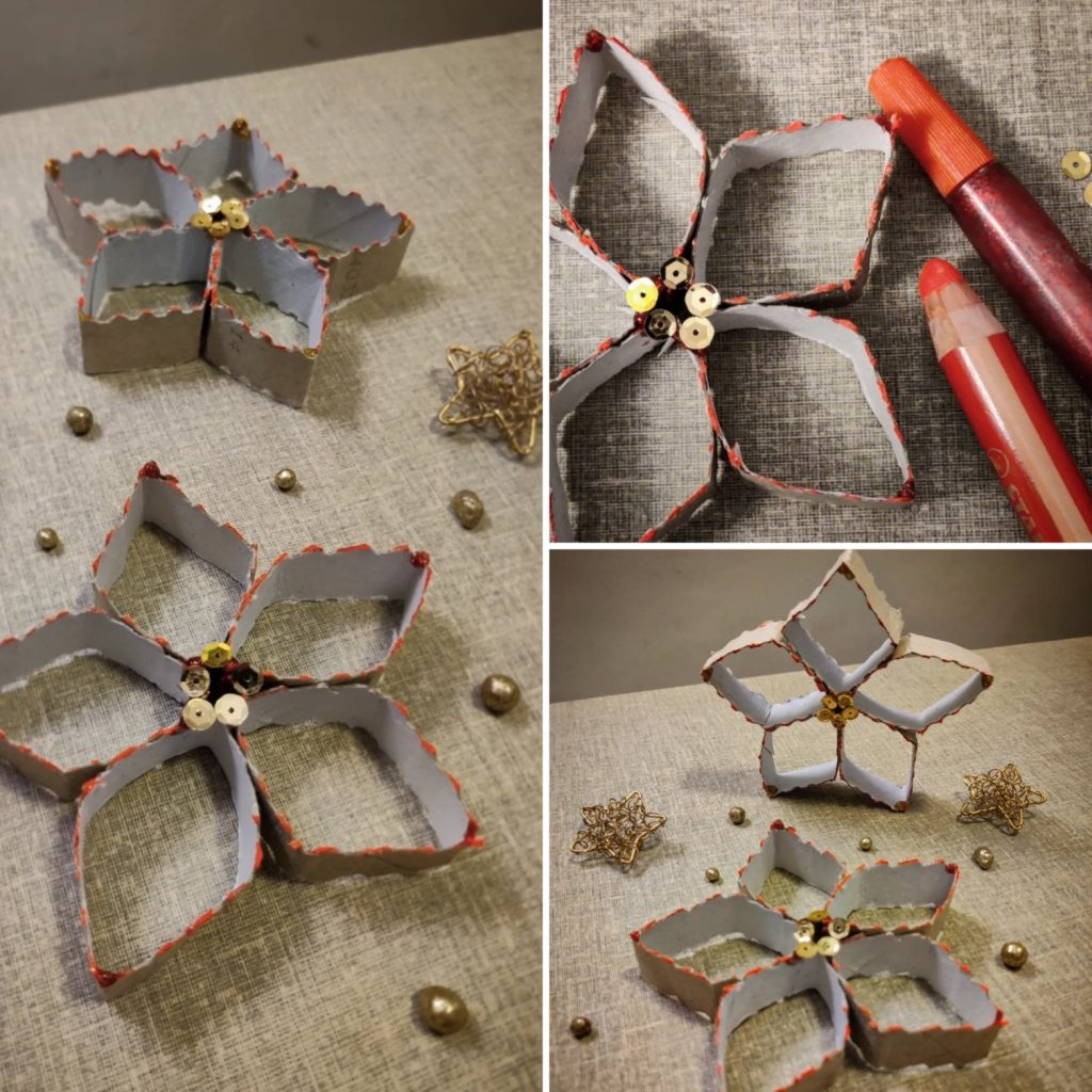 Die hübschen Weihnachtssterne aus leeren Klorollen sind schnell gebastelt und eignen sich als Christbaumschmuck, Geschenkanhänger und Tischdeko ??️?