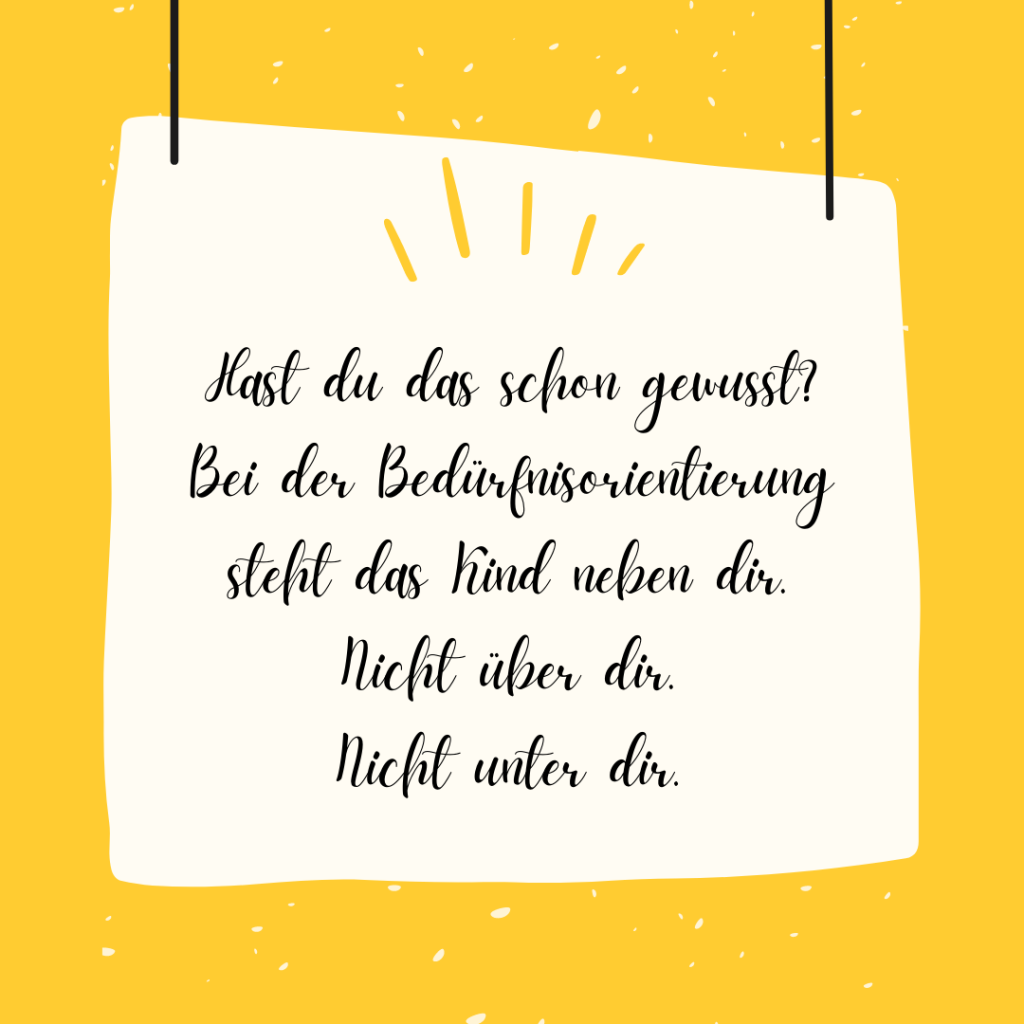 Dennoch darf man den Begriff der Bedürfnisorientiertheit nicht falsch versteht als „alles für’s Kind tun und seine eigenen Bedürfnisse nicht wahrnehmen bzw. zurückstellen“.
